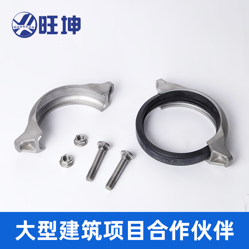 連接管道的外側(cè),并與預(yù)先滾制的溝槽相吻合,再在橡膠圈的外部扣上卡箍,然后用二顆螺栓緊固即可。由于其橡