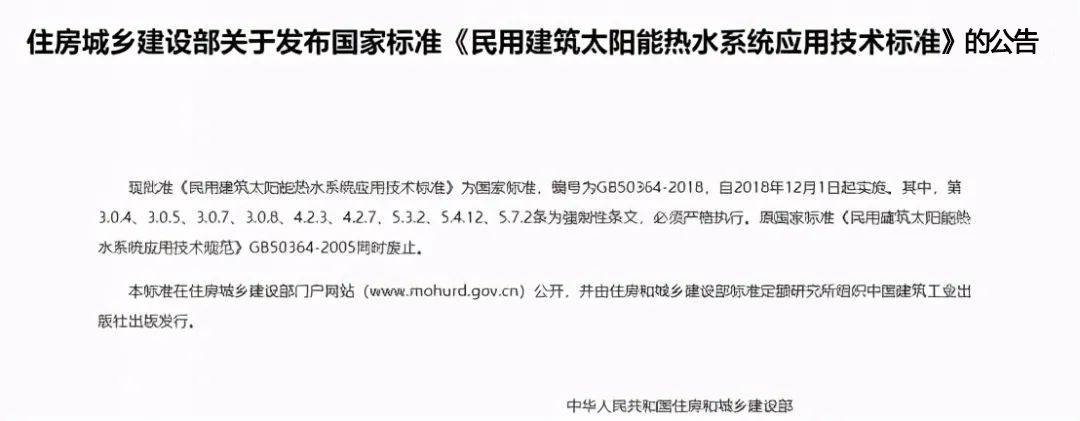 第一本標(biāo)準(zhǔn):已于2018年12月1日實(shí)施的GB50364-2018《民用建筑太陽(yáng)能熱水系統(tǒng)應(yīng)用技術(shù)標(biāo)準(zhǔn)》。在這本標(biāo)準(zhǔn)的5.5.4條明確規(guī)定: