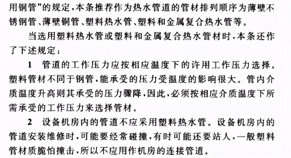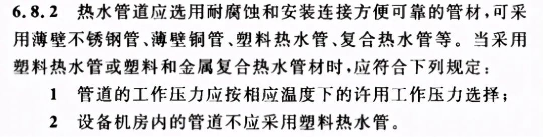 熱水管道應(yīng)選用耐腐蝕、安裝連接方便可靠、符合飲用水衛(wèi)生要求及相關(guān)規(guī)范的的管材。宜優(yōu)先選用不銹鋼管等不易滋生細(xì)菌的管材。選用不銹鋼管道系統(tǒng),應(yīng)控制氯化物熱水中含量:316L不銹鋼宜小于250mg/l ,304不銹鋼宜小于50mg/l。
