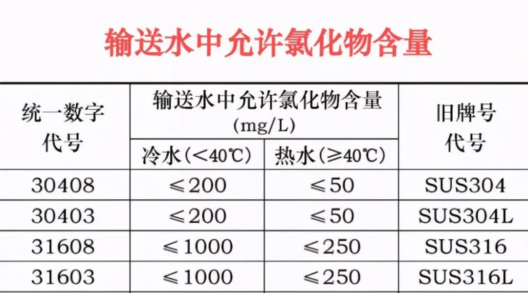 2.輸送水中允許氯化物的含量(特別注意冷熱水的不同)