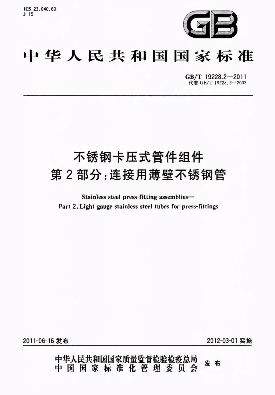 GB/T 19228.2-2011不銹鋼卡壓式管件組件 第2部分:連接用薄壁不銹鋼管